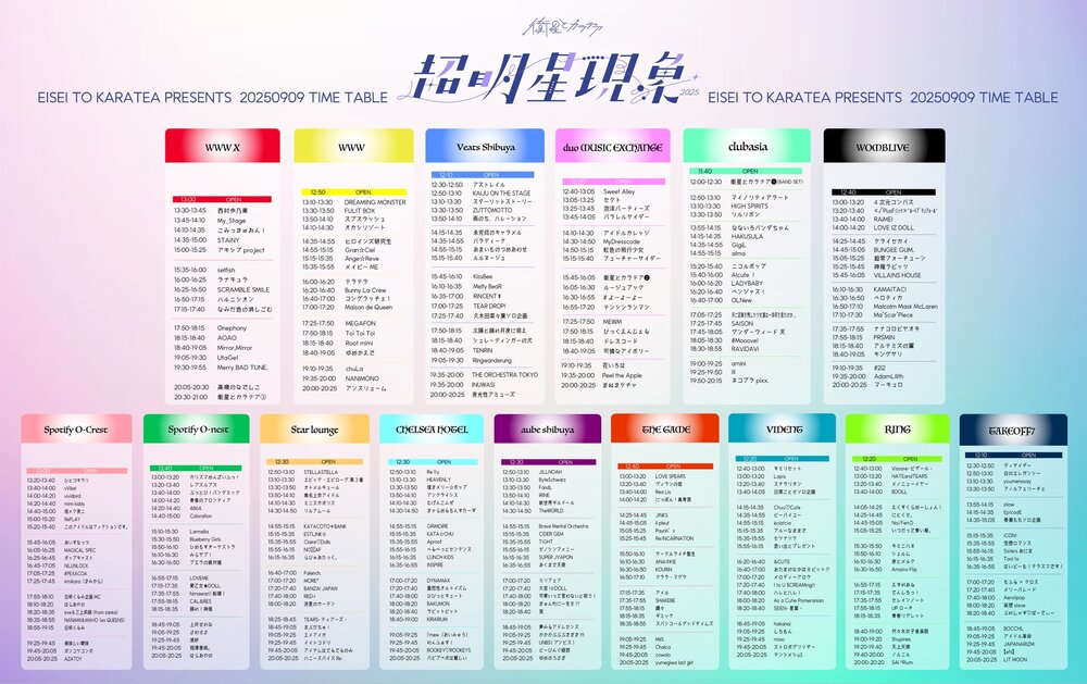 衛星とカラテアPresents 「超 明星現象 2025」 SCHEDULE 2025/09/09(火) 19:25 - 23:59 aube shibuya OPEN 10:00 / START 10:10 前売り4500円 当日+1000円 🎤出演19:25-(20) 👑特典会終演後20:30-21:40(会場内) チケット URLをコピーする 報告する